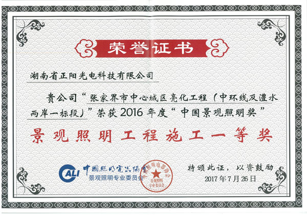 湖南省正陽光電科技有限公司是一家從事亮化工程及大型燈光藝術(shù)的設(shè)計(jì)、制作、安裝和維護(hù)于一體的專業(yè)化公司。公司資質(zhì)齊全、管理嚴(yán)謹(jǐn)、技術(shù)先進(jìn)、實(shí)力雄厚,取得了城市及道路照明工程專業(yè)承包壹級(jí)資質(zhì)、照明工程設(shè)計(jì)專項(xiàng)甲級(jí)資質(zhì)、機(jī)電工程施工總承包貳級(jí)資質(zhì)、施工勞務(wù)等資質(zhì)、國家高新技術(shù)企業(yè)、國家“重質(zhì)量·守誠信”示范企業(yè)。